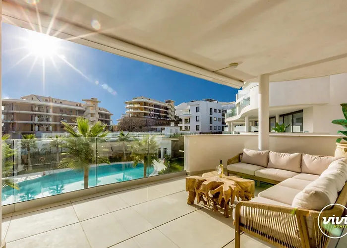 A Vivi Homes - Terra Higueron Luxury, Terrace & Pool apartman erkélyt és ülősarkot kínál kilátással a medencére, valamint olyan kényelmeket, mint a klímaberendezés. Élvezze a szálláshely hajszárítóval és törölközőkkel felszerelt fürdőszobájának kényelmét. Zuhanyzó is található.